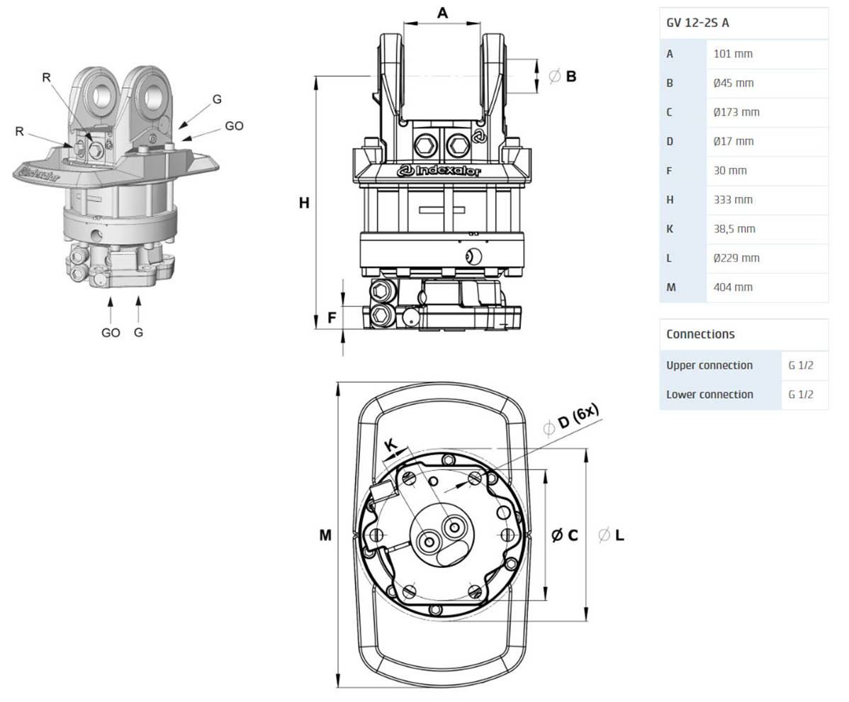 Rotator INDEXATOR GV12-2S A M16 Ø173mm for 100mm links